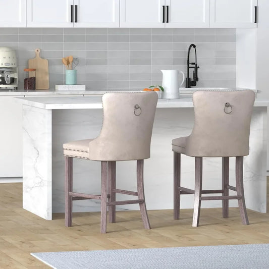 27" Modern Velvet Bar Stools with Button Decor Set of 4