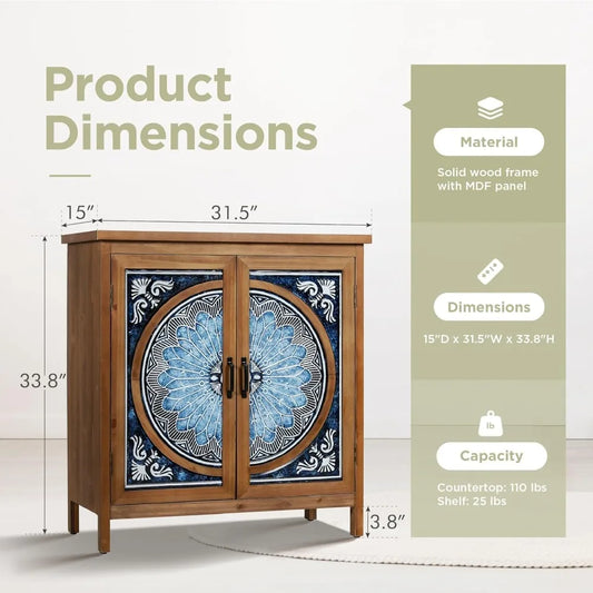 Distressed Storage Cabinet with Porcelain Pattern