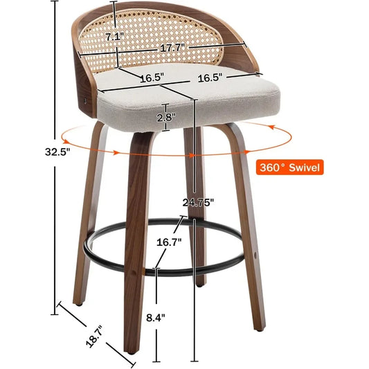 Mid-Century Swivel Rattan Bar Stools Set of 2