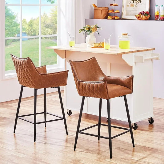 Set of 2 Modern Counter Height Barstools Mid-Back