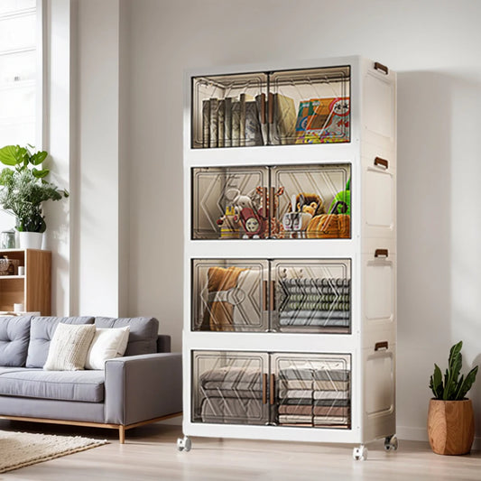 4 Tier Plastic Storage Containers with Doors & Wheels