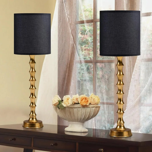 26" Metal Table Lamp with Gold Stand and Black Lampshade