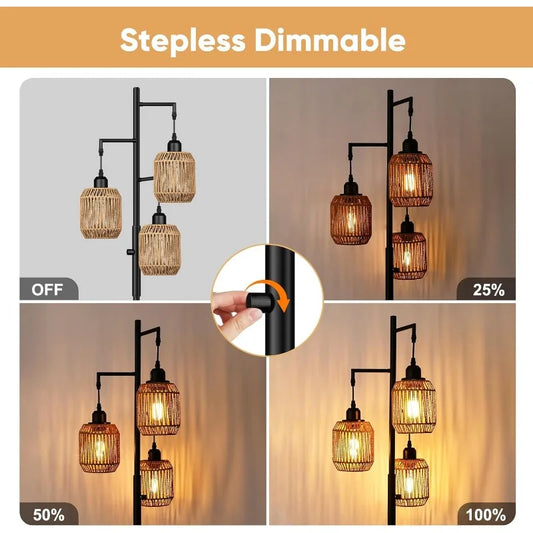 Sold out3 Light Farmhouse Rattan Floor Lamp
