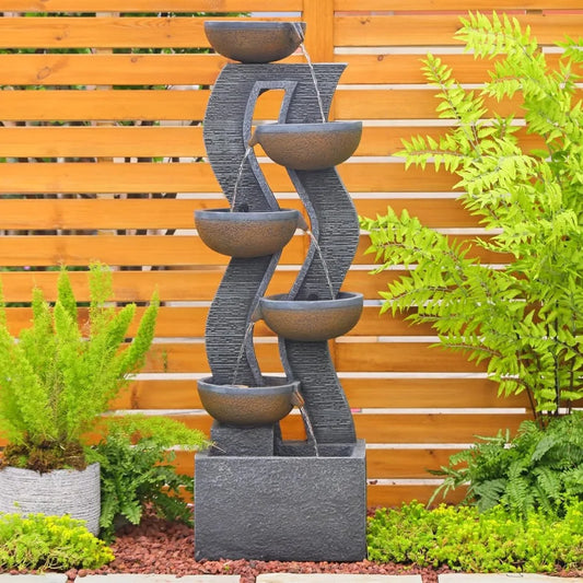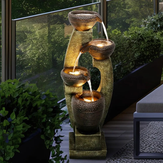 4-Tier Bowl Outdoor Fountains and Waterfalls with LED Lights
