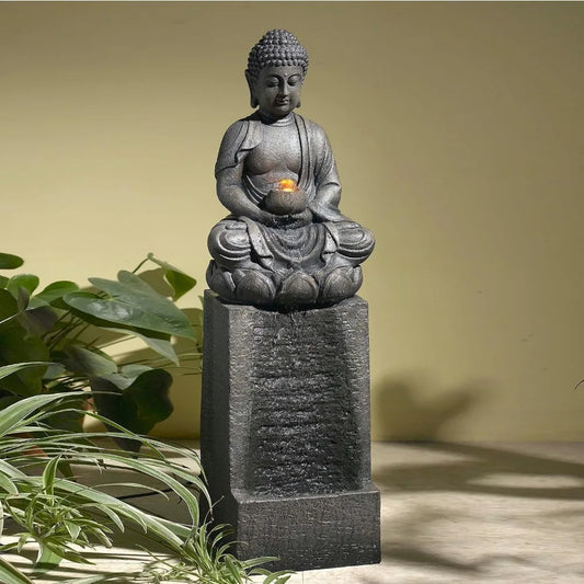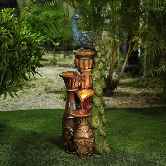 Large Outdoor Garden Fountain with Illuminated Waterfall