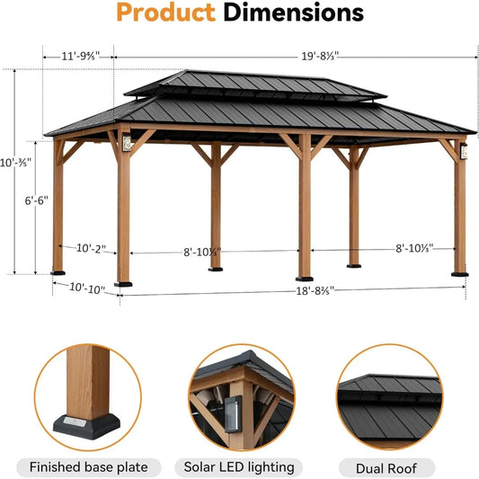 Permanent Hardtop Gazebo 12' x 20' w/ 4 LED Lights