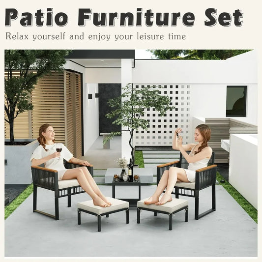 3 Piece Outdoor Wicker Conversation Sectional L-Shaped Sofa